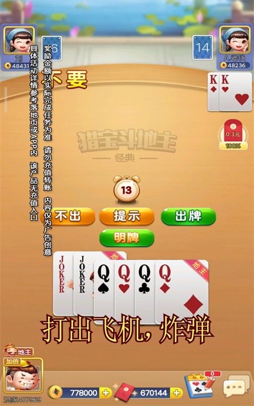 在猎宝斗地主里,每一天都充满了新挑战和新机遇。我们带来的斗地主游戏,不仅有美轮美奂的游戏界面,还有引人入胜的配音效果。搭配上多元化的游戏模式,让你在每一次游戏中都能找到新鲜感。加入猎宝斗地主的行列,下载这款游戏,让你在智斗中既能锻炼思维,又能获得无尽的乐趣。